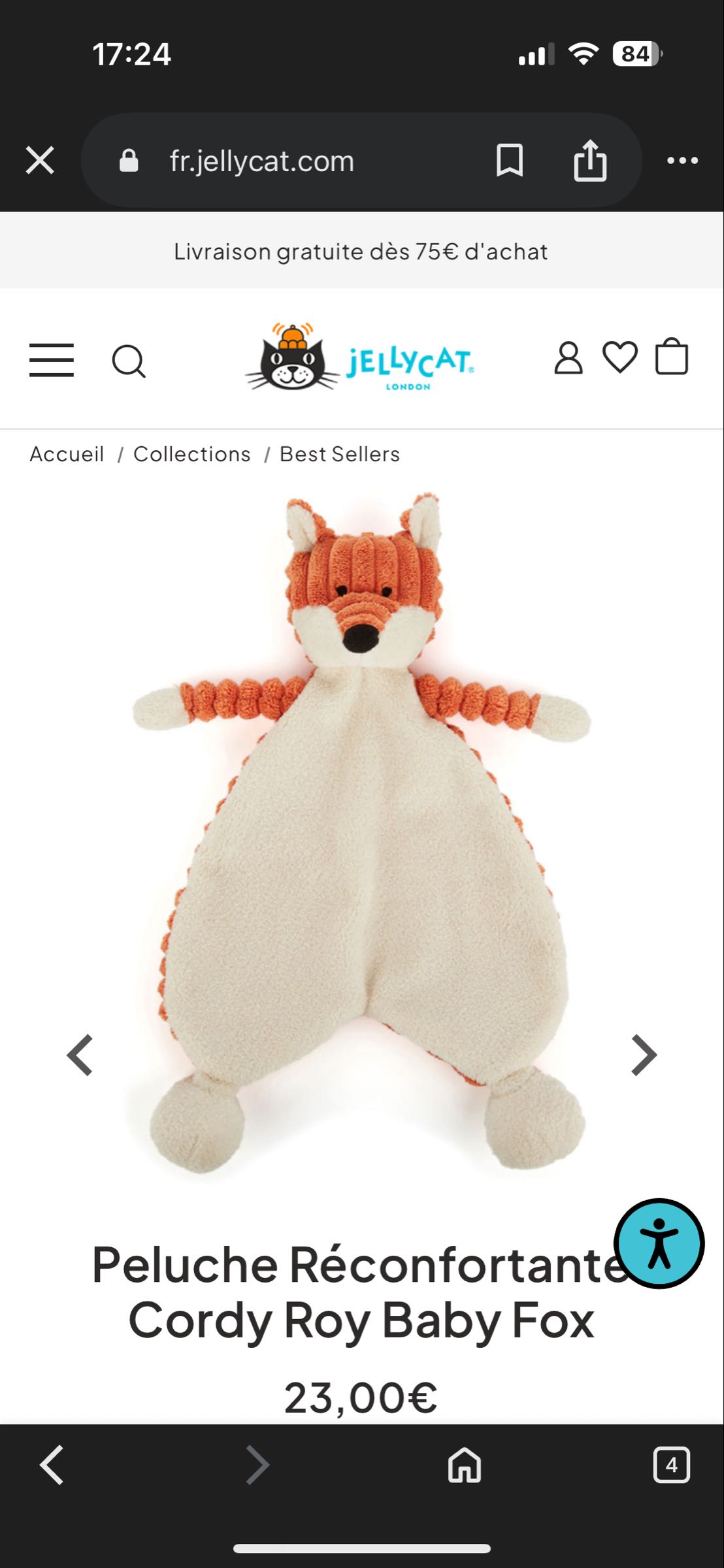 quantité de COMFORTER BABY FOX JELLYCAT
