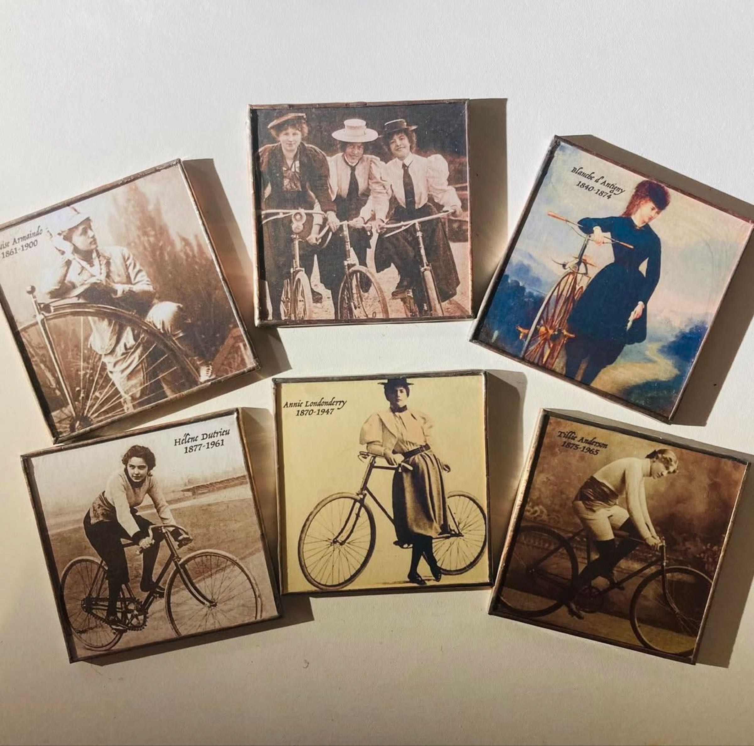 KIT 6 SOUS VERRES FEMMES CYCLISTES & SUPPORT CRÉATIONS DE MORANE